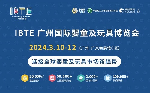 由中國對外貿易廣州展覽有限公司、中國輕工工藝品進出口商會和廣東潮域展覽有限公司強強聯手,共同主辦的2024 IBTE廣州國際嬰童及玩具博覽會(簡稱:IBTE廣州童博會)將于2024年3月10-12日在廣州•廣交會展館C區舉辦。本屆展會定檔內外貿采購旺季3月,助力展商搶抓春季內外貿易采購及跨境電商選品先機,迎接2024年中國嬰童用品行業開年第一展。同期系列展包括IBTE廣州潮玩展、IBTE廣州嬰童用品展等。